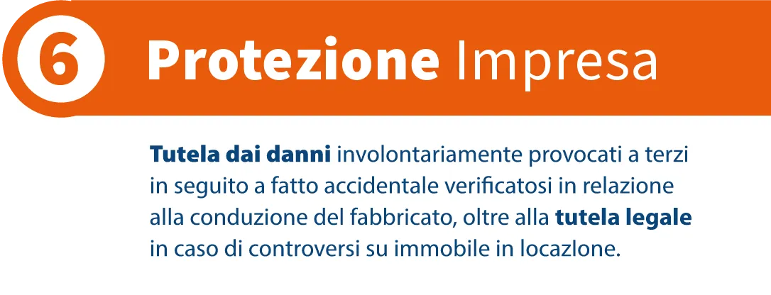 Tutela dai danni involontariamente provocati a terzi in seguito a fatto accidentale verificatosi in relazione alla conduzione del fabbricato, oltre alla tutela legale in caso di controversie su immobile in locazione.